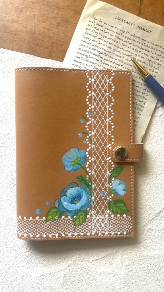 筆を動かすたび、革の表面にやわらかな息づかいが生まれます。
